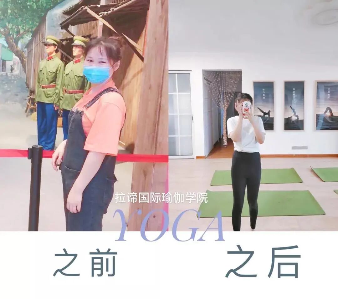 在教学丰富经验的小辉老师循循善诱地教导和同学们鼓励下,她带着强大的韧性和默默努力,38天下来,体重身形从117斤到100斤,不敢讲话到体式编排与引导语言流畅,从小白到黑马,一天一天美丽蜕变,飞速成长,给我们带来了惊喜。